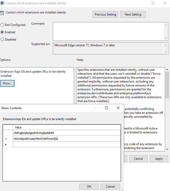 GPO (Group Policy Object) and Intune settings catalogue are two popular tools that organizations use to enforce such policies. So, whether it’s through GPO or the Intune settings catalogue, organizations have the means to effectively control which extensions can or cannot be installed in Microsoft Edge, safeguarding their browsing environment. (screenshots below)